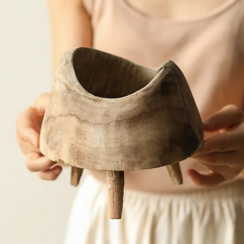 Dekoschale in rustikalem Design mit drei stabilen Füßen.